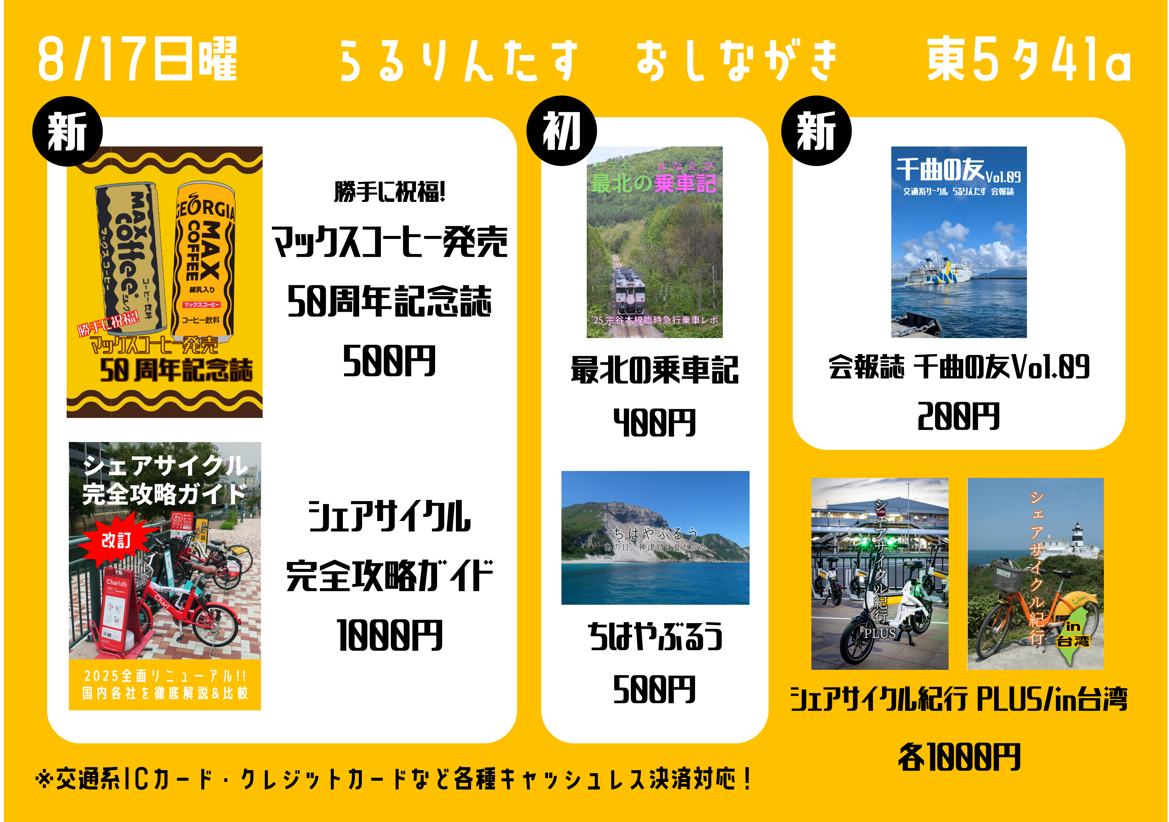 当サークルらるりんたすは、コミックマーケット106に2日目(8/17日曜)東5ホール タ-41aにて出展いたします。また、前日8/16(土)に大崎駅前で開催されるおもしろ同人誌バザールにも出展します。ぜひお越しください。